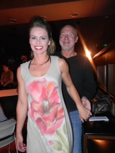 his love story delivered the emotion and fashion…complete with an electronically charged soundtrack along with ‘Green’ designs that made the intimate audience want to dance…and shop! Producer Bruland walked the runway in local shop Faboo’s linen dress with this season’s fave burst of color..a flower accent handpainted in the center of the dress. It is a harbinger of our early Springtime here in the Rockies…bring it on!
